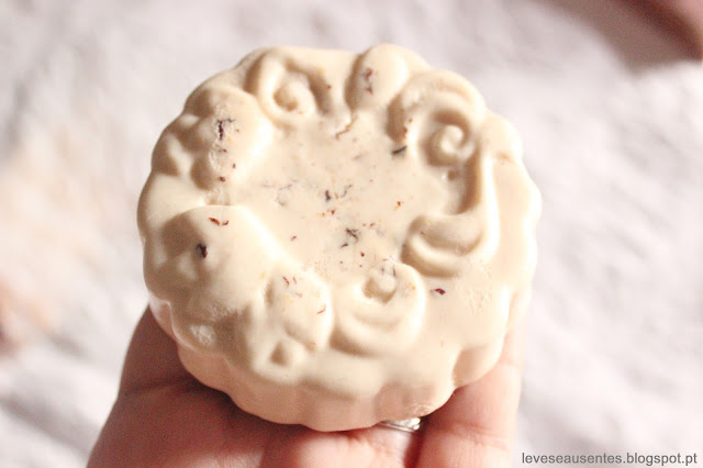 Sultana é um sabonete muito cremoso que pode ser utilizado tanto para as mãos como para o corpo. Para mim o cheiro era indescritível mas doce e fresco ao mesmo tempo, tem pedaços de alperces e passas que combinam muito bem com o cheiro de olíbanos. Uma perdição!